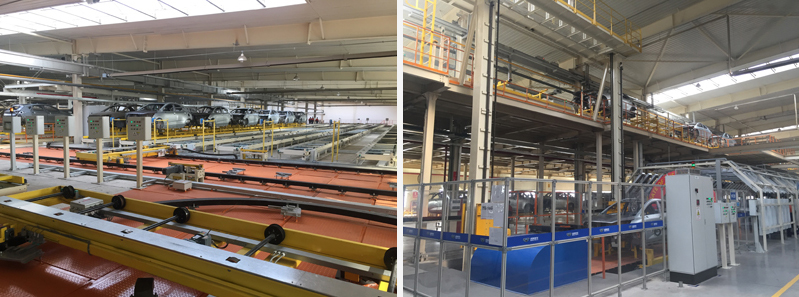 該工程包括:1、板式鏈,節(jié)拍為150秒/臺(tái),地板鏈根據(jù)工藝要求,自動(dòng)完成工件的上件、工位間輸送和下件功能;2、自行小車,節(jié)拍為150秒/臺(tái)(可提升到120秒之內(nèi)),小車可設(shè)定全自動(dòng)、半自動(dòng)和手動(dòng)三種方式;3)WBS輸送線,150秒/臺(tái),通過調(diào)速可以提到120秒,關(guān)鍵部位節(jié)拍:90秒/臺(tái)。根據(jù)工藝流程的需求,能自動(dòng)完成一系列物料的傳接動(dòng)作。