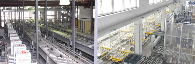 整體項目由摩擦輸送線、輥筒輸送機、鏈式輸送機、移載機、垂直升降機、外形檢測機、打包帶捆扎機、電控系統、維修平臺組成。