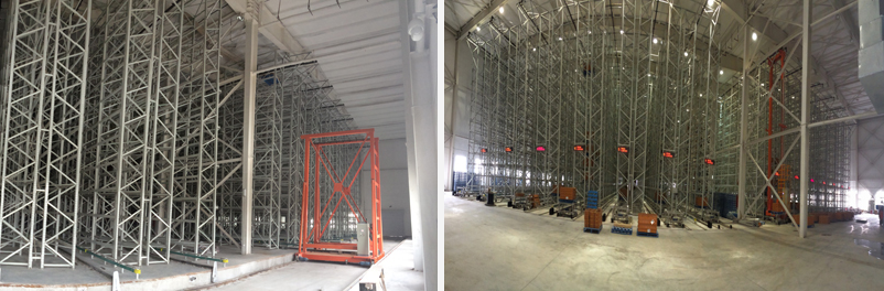 巖心高架庫長約80米,跨度規劃約66米,貨架高度約為14米。該倉庫由立體貨架系統、堆垛機系統、轉軌車系統、出入庫輸送系統及相應的電氣控制系統、WCS及WMS系統組成。