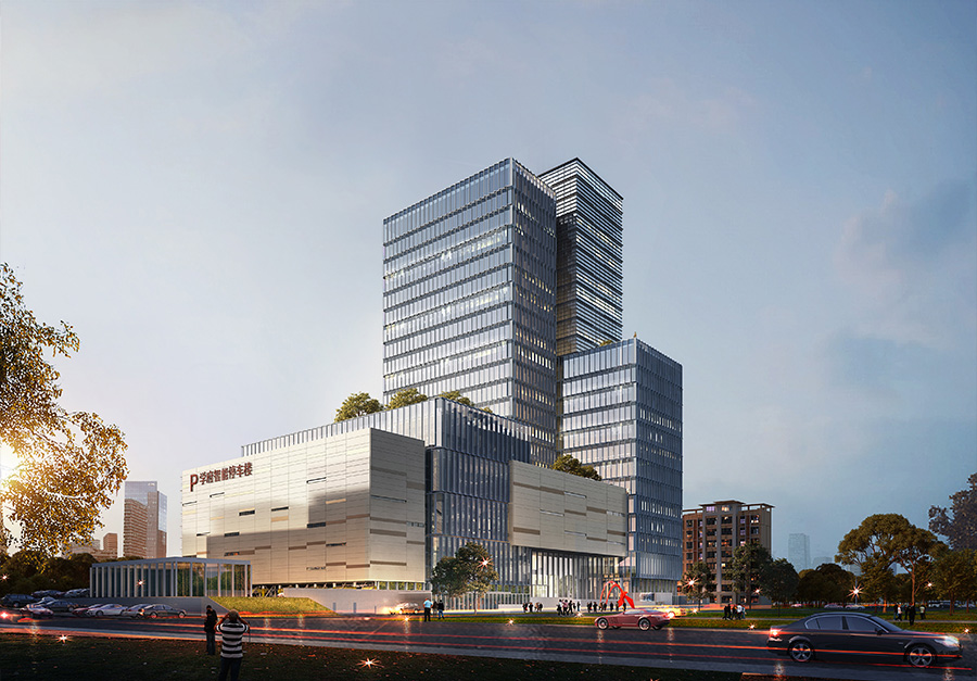 該項目主要包括1幢13層(局部11層)的停車樓和1幢21層的商務樓,總用地面積約22.2畝,總建筑面積70751.67㎡,停車位共計1204個。其中停車樓為鋼結構,建筑面積17908.41㎡,地下建筑3層,地上建筑13層(局部11層),停車樓內可停918輛,室外可停118輛;商務樓為框架剪力墻結構,建筑面積為52843.26㎡,地下兩層可停車168輛,地上部分共21層,建筑總高度為99.2米。