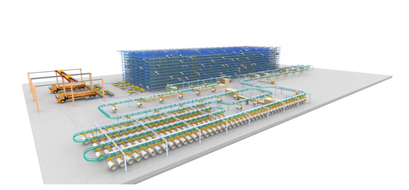 整體系統包括:貨架系統、各種機械搬運系統(重載堆垛機、RGV小車、升降機等)、電氣控制系統、WMS/WCS軟件系統、車輛調度系統、自動裝車系統、數字孿生系統、SCRAM系統、視頻監控系統等。