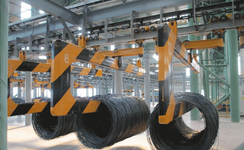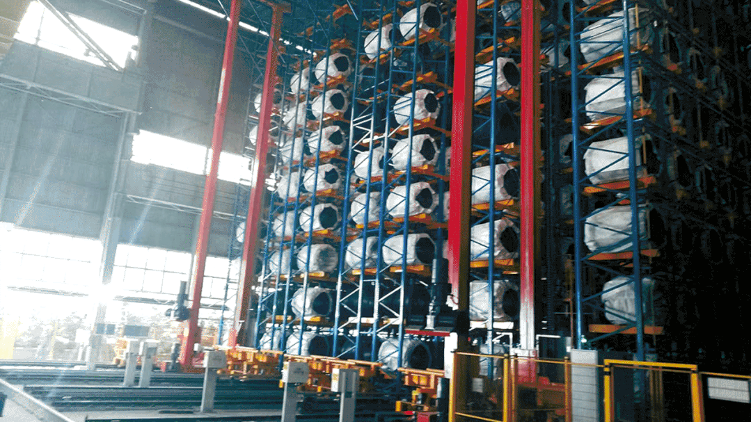 鋼鐵成品線材工廠智能物流整體解決方案實現了盤卷從生產下線、入庫、存放、出庫裝車等物流及信息流的全程自動化管理。