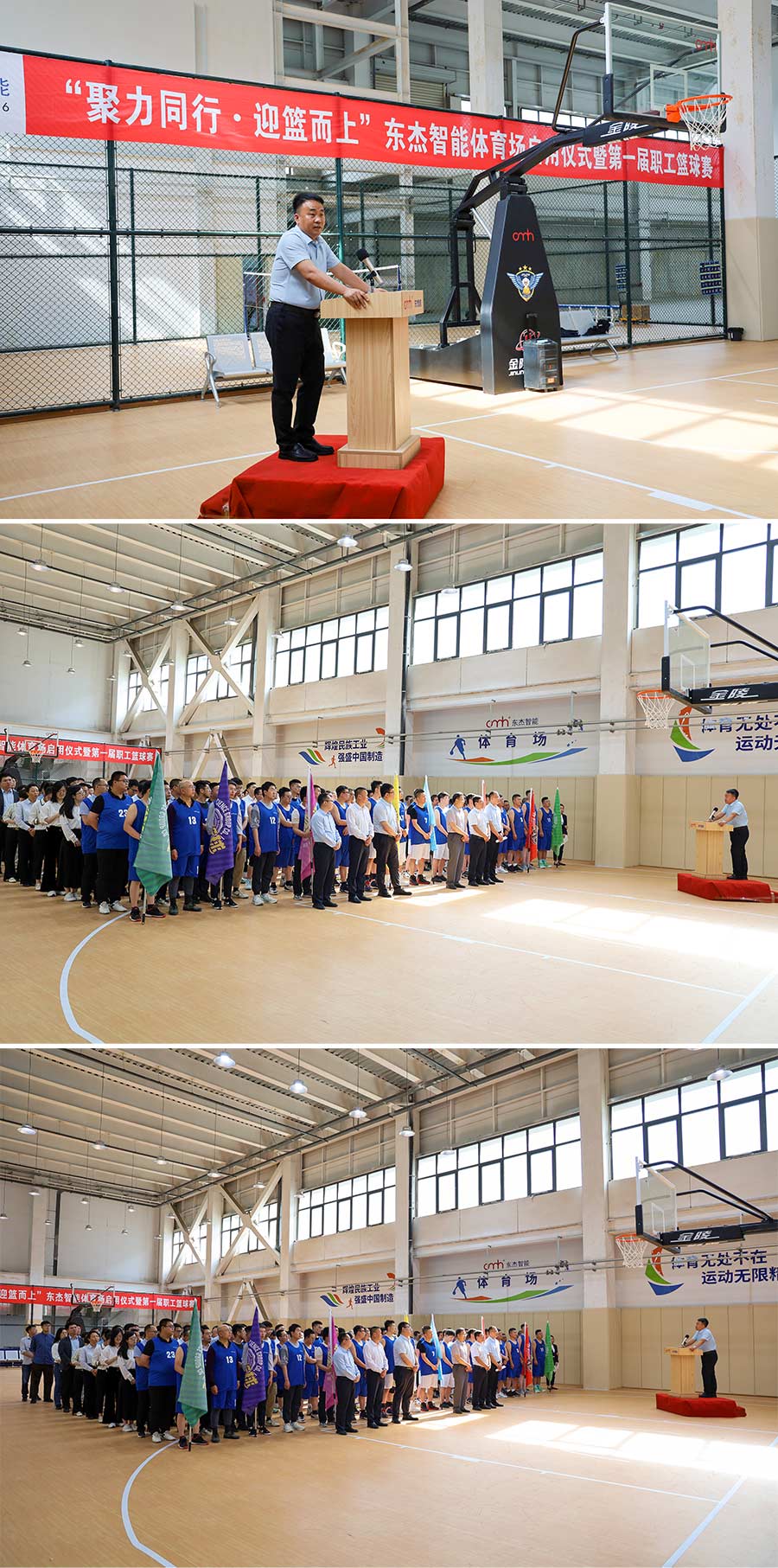 近日,一場盛大的“聚力同行·迎籃而上”東杰智能體育場啟用儀式暨第一屆職工籃球賽決賽在東杰智能總部體育場璀璨啟幕。活動由集團(tuán)營銷中心副總經(jīng)理侯晉雷先生主持,集團(tuán)總經(jīng)理王振國先生攜高管團(tuán)隊——副總經(jīng)理朱忠義、郝志勇,董事會秘書張新海,以及總經(jīng)理助理劉云峰等親臨現(xiàn)場,共同見證了這一歷史性時刻。